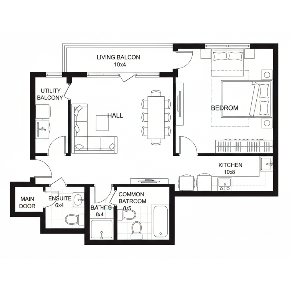 Super Built-Up Area 500 - 550 Sq.ft.
