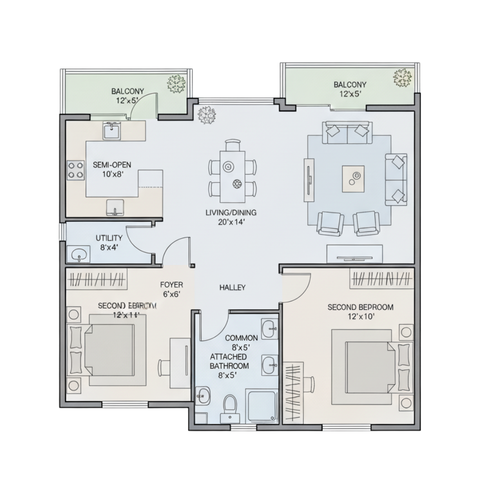Super Built-Up Area 700 - 750 Sq.ft.