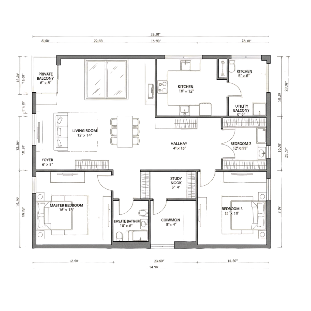 Super Built-Up Area 1400 Sq.ft.