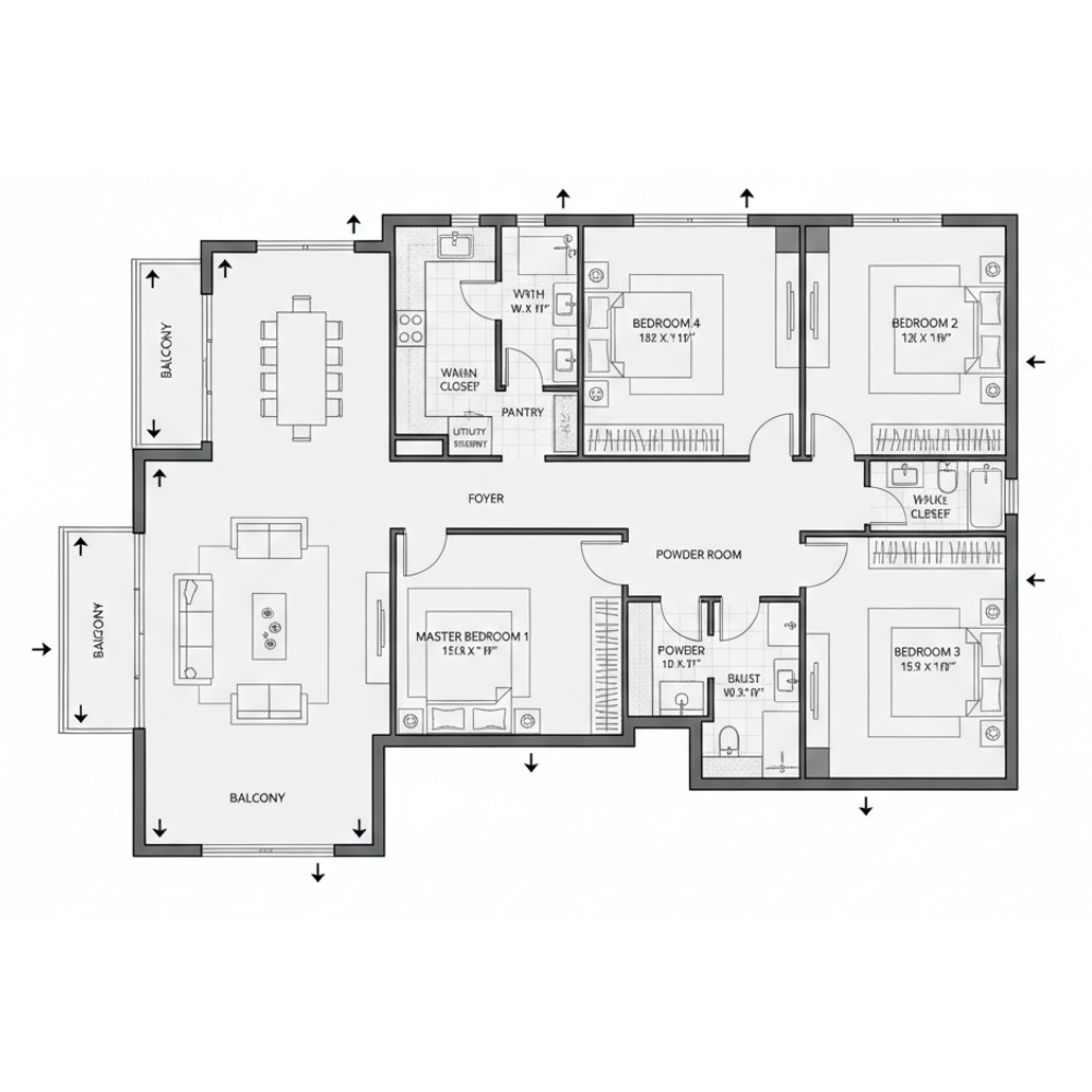 Super Built-Up Area 1916 Sq.ft.